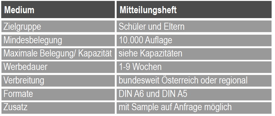 Die Hausaufgabenhefte bieten wir wie die Vokabelhefte im Format DIN A6 und DIN A5 an. Mit den Heften können Sie vor allem im Bereich der Grundschulen und weiterführenden Schulen jahrgangsübergreifend werben. Der Kunde alle 4 Umschlagseiten belegen, das Verbreitungsgebiet und den Erscheinungstermin bestimmen.