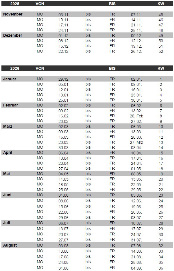 KALENDERWOCHEN